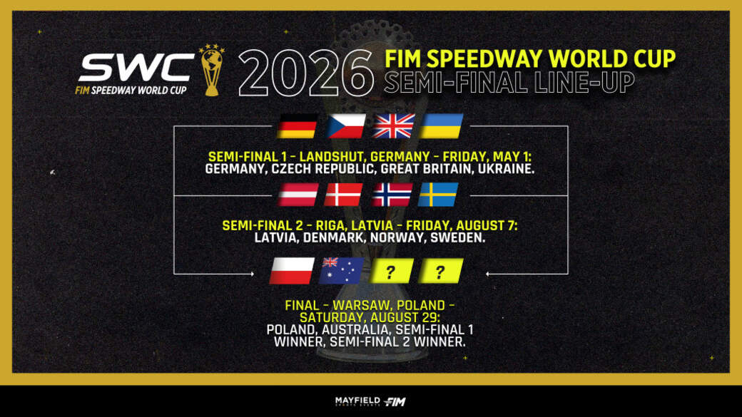 The line-up for the 2026 FIM Speedway World Cup Semi-Finals in Landshut, Germany on May 1 and Latvian capital Riga on August 7 has been revealed.