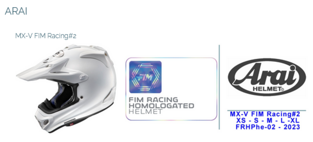 La FIM a le plaisir d'annoncer l'homologation de nouveaux casques FIM conformément à la norme FRHPhe-02, notamment les nouveaux modèles tout-terrain d'ARAI et JUST1, ainsi que le modèle de course sur circuit de BELL.